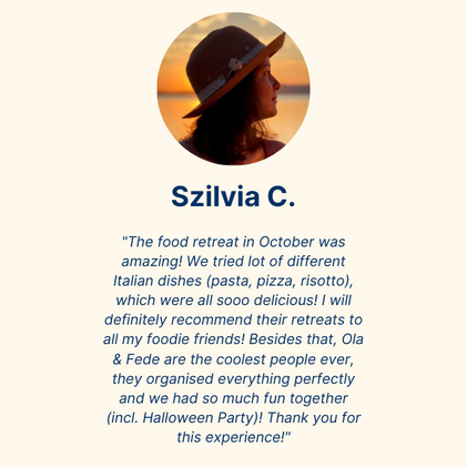 ✅ Saturday community experiences (cooking classes, cheese making, olive harvest, day trips in beautiful & historical locations on Saturdays)